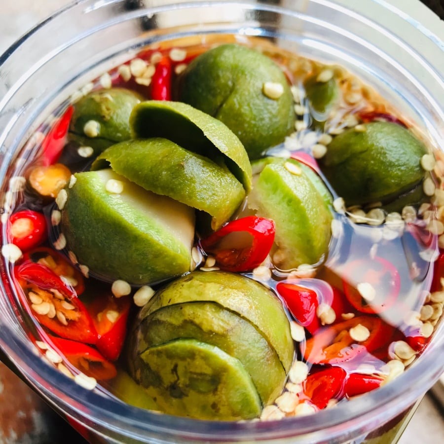 Sấu non đầu mùa ngâm với nước mắm chua ngọt đảm bảo bắt miệng, bao nhiêu cơm cũng 'hết bay'.