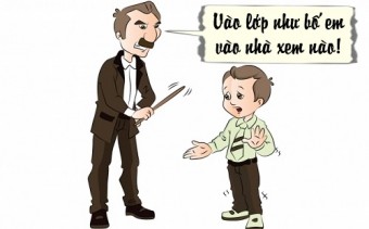 - Tèo, sao em phải lén lút như thế hả? Cứ vào lớp như bố em vào nhà xem nào!
