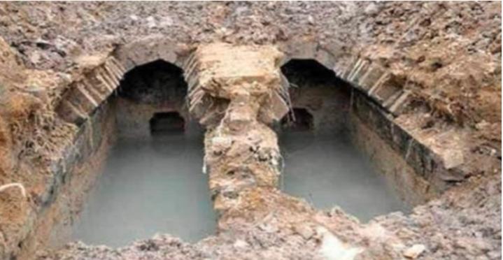 Ngôi mộ cổ được tìm thấy ngập trong nước bởi mưa lớn. (Ảnh: Sohu)