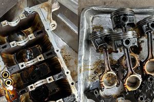 Dựa theo kết quả kiểm tra sơ bộ, thay vì nhận được những thông tin về hệ thống điều hòa, chủ xe lại được nhân viên xưởng thông báo động cơ xe có thể đang gặp vấn đề nghiêm trọng, cần phải tháo máy để kiểm tra chi tiết.Sau khi tiến hành gỡ mặt máy để kiểm tra, chủ xe đã không khỏi bất ngờ khi nhiều bộ phận bên trong bị cháy đen, lòng xi lanh có dấu hiệu của việc lọt nước.