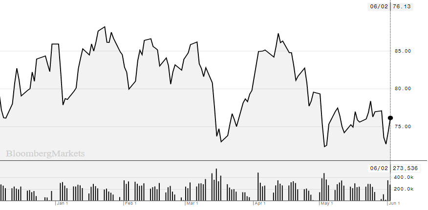 Diễn biến giá dầu Brent trong 6 tháng qua.