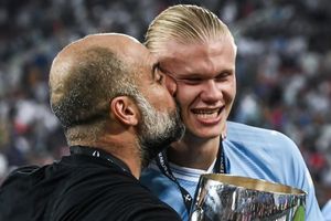 Old  Default Pep Guardiola hôn Haaland 'làm lành' khi lập kỷ lục với Man City