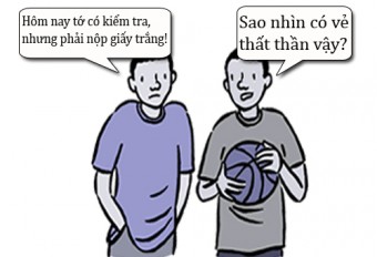 - Hôm nay tớ có kiểm tra, nhưng lại phải nộp giấy trắng!