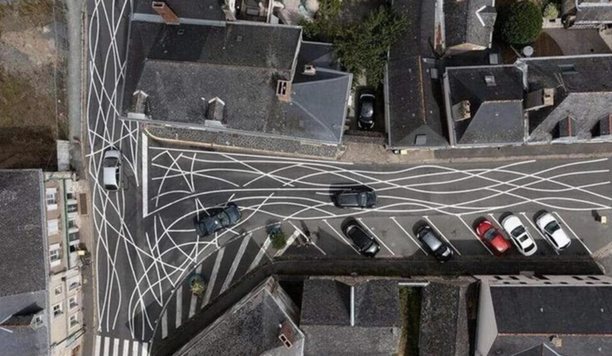 Một thị trấn nhỏ ở miền Tây nước Pháp đã thu hút sự chú ý vì dùng những vạch trắng chồng chéo nhằm gây nhầm lẫn cho người lái xe để khiến họ chạy chậm lại.