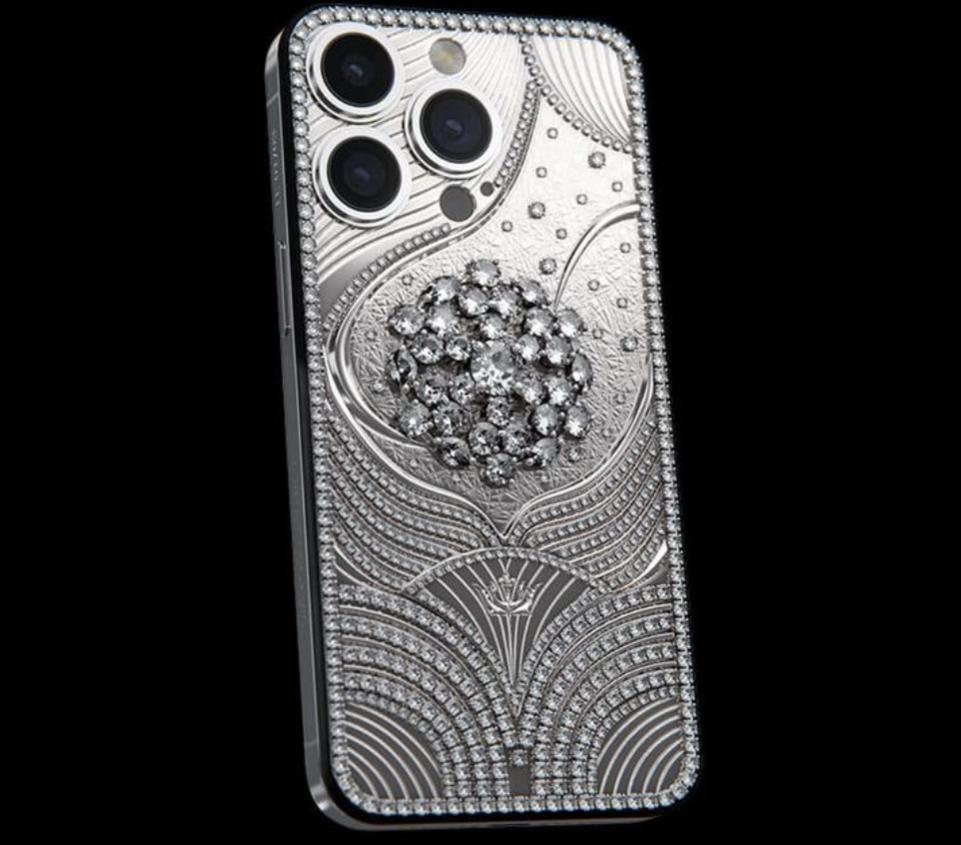 iPhone 15 Diamond Snowflake nạm kim cương, được xem là mẫu iPhone 15 đắt nhất hiện nay. Ảnh: Caviar