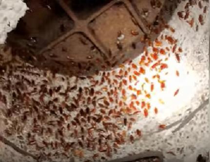 Theo đó, phía dưới đường cống ẩm thấp, hàng ngàn con gián quy tụ, túm tụm lại thành cụm, mỗi cụm ít nhất cũng phải vài trăm con. Người đàn ông rọi đèn đến đâu liền "nổi da gà" đến đó.