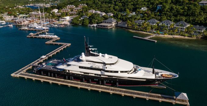 Siêu du thuyền Alfa Nero ở cảng Falmouth, quốc đảo Antigua và Barbuda. Ảnh: WSJ