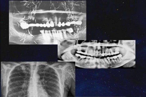 Khi kiểm tra kết quả chụp CT, máu và chụp X-quang của bệnh nhân, bác sĩ phát hiện bệnh nhân này cấy rất nhiều kim bùa vào mắt, mặt, cổ và ngực.