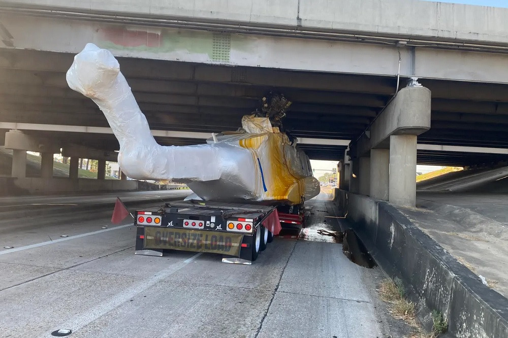 Những bức ảnh được tờ Bưu điện New York công bố hôm 27/9 cho thấy, một chiếc trực thăng được bọc kín và đặt trên xe kéo rơ moóc đã va chạm với một cầu chui thuộc địa phận thành phố Denham Springs ở bang Louisiana, Mỹ vào sáng 20/9, khi viên tài xế cho xe kéo chạy tắt qua đây. Tuy nhiên, người này không để ý đến phần rotor cánh quạt của chiếc trực thăng.