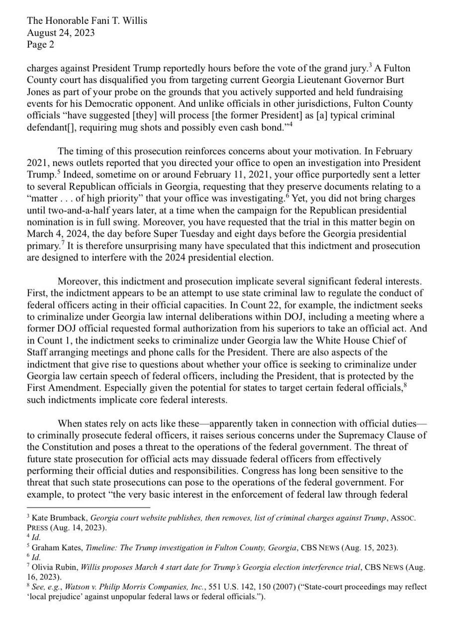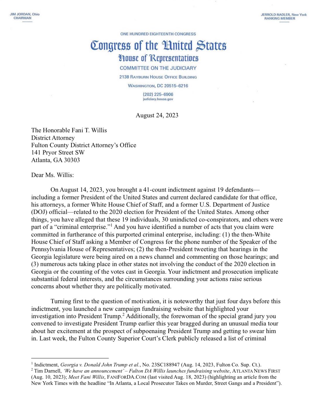 Jordan, đảng viên Đảng Cộng hòa ở Ohio, đã yêu cầu Biện lý quận Fulton Fani Willis, đảng viên Đảng Dân chủ, giao nộp toàn bộ tài liệu liên quan đến vụ án.