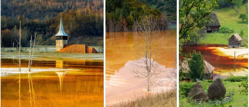 Hồ nước khổng lồ màu cam, đỏ, vàng khiến khung cảnh Geamana trở nên rực rỡ như buổi chiều tà. Với những người chưa biết sự thật, có lẽ phải thốt lên cảnh đẹp như tranh vẽ.