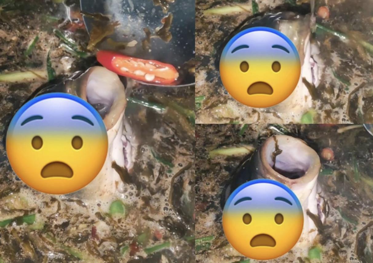 Cụ thể, theo clip được ghi lại, món canh cá với rất nhiều nguyên liệu như dưa, ớt, hành... nhưng điều gây chú ý nhất chính là phần đầu cá nhô lên ở chính giữa. Trong khi các nguyên liệu đã chín hết thì chiếc đầu cá này còn sống nguyên. Và mỗi khi có người múc nước canh đổ lên miệng thì miệng con cá lại "ngớp ngớp" như tưởng được... cho ăn. Hình ảnh này ngay lập tức khiến dân mạng phẫn nộ.