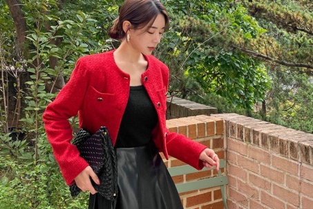 Bên cạnh những mẫu áo khoác dáng dài rộng, áo khoác dáng cộc, đặc biệt là áo từ vải tweed đang rất được phái đẹp dành nhiều thiện cảm trong thời điểm hiện tại. So với áo khoác dáng rộng, áo tweed dáng cộc, ôm nhẹ mang lại cảm giác trẻ trung, gọn gàng hơn cũng như dễ mix đồ hơn. Bạn gái có thể mix item này với chân váy, quần âu, quần jeans đều đẹp, chúng thật sự “dễ tính” nhưng hiệu quả thời trang lại không thể xem thường.