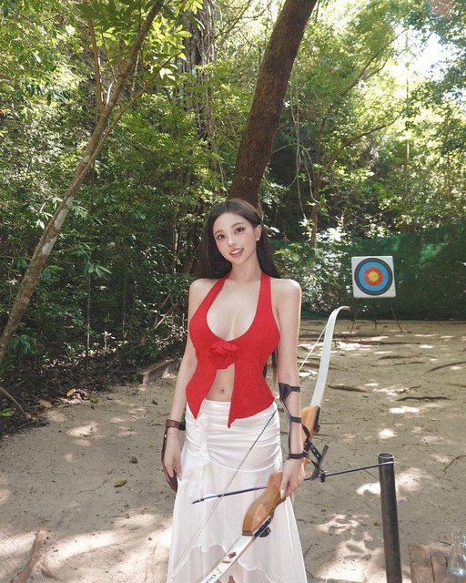 Old  Default Hot girl triệu fans quyến rũ với áo xẻ sâu, váy ôm tôn vòng 3 đi bắn cung