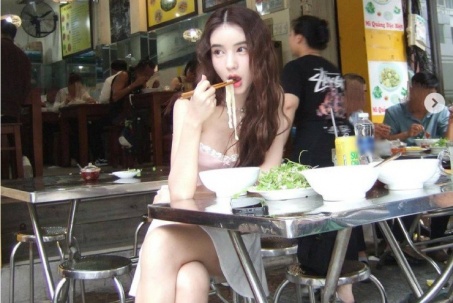Mới đây, chân dài tiếp tục nhận về nhiều chú ý khi đến thăm Việt Nam, đây không phải là lần đầu tiên Yoshi đến đây song cô vẫn rất thích thú tham quan, trải nghiệm mọi thứ. Trên trang cá nhân người đẹp khoe khoảnh khắc ăn diện quyến rũ, mát mẻ và hào hứng thưởng thức mì Quảng - một trong các món ăn đặc trưng của đất nước ta.