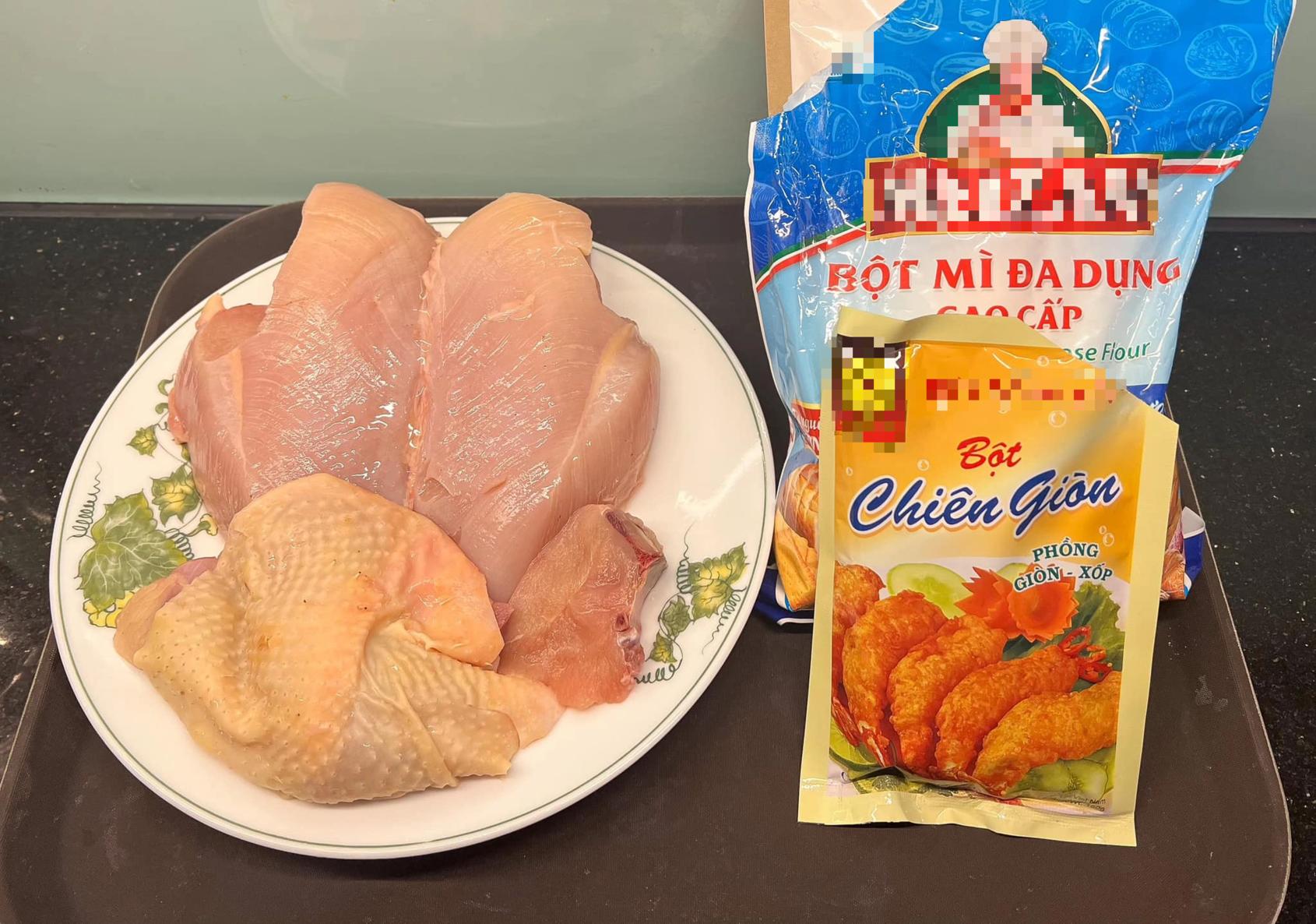 Nguyên liệu làm gà viên: Ức gà, đùi gà đã lọc xương, bột mỳ, bột chiên giòn, bột bắp