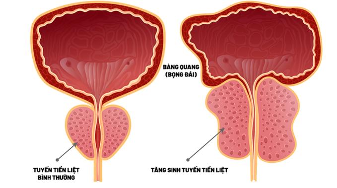 Kích thước tuyến tiền liệt tăng gây tiểu khó, ngắt quãng, dòng nước yếu, tiểu không hết... Mặt khác, cơ bàng quang cũng phải tăng cường hoạt động để dòng nước tiểu thắng lực cản niệu đạo, dẫn đến tiểu nhiều lần, tiểu gấp, tiểu đêm nhiều.