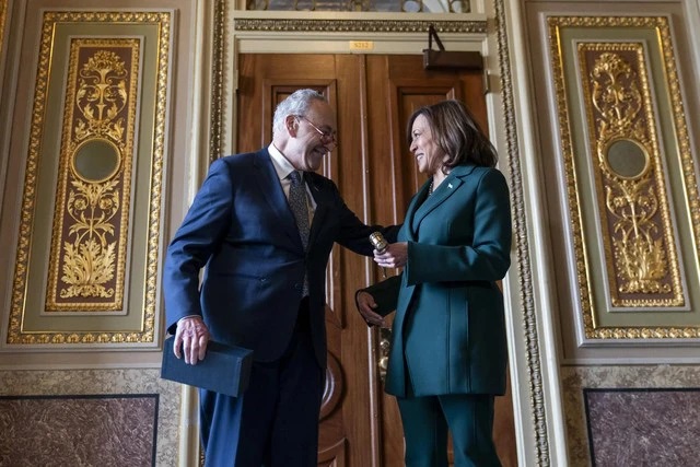 Ngay sau đó, Lănh đạo phe đa số Thượng viện Mỹ Chuck Schummer đă chúc mừng bà Harris.