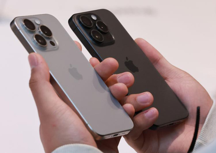 Khách hàng xem điện thoại iPhone trong một cửa hàng ở Myeong-dong, Seoul, Hàn Quốc hôm 13-10-2023 - Ảnh: Yonhap