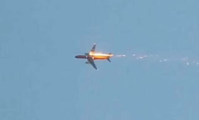 Ảnh chụp cho thấy một máy bay vận tải của Nga bị cháy động cơ trên bầu trời Ulan-Ude (Siberia) hôm 7.12