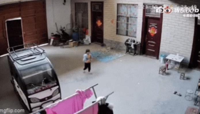 Hình ảnh từ camera an ninh cho thấy cô bé đang đi lang thang quanh sân một mình, liên tục gọi mẹ và nhìn khắp mọi hướng với hy vọng tìm thấy mẹ mình. Sau đó, cô bé ngồi trên ghế với vẻ chán nản và cố gắng gọi mẹ thêm vài lần nữa nhưng không được.
