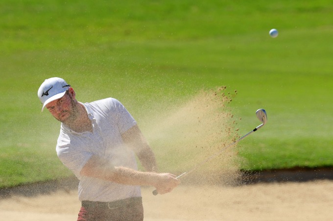 Grayson Murray đánh bóng từ bẫy cát hố 10 vòng cuối Sony Open trên sân Waialae Country, Hawaii ngày 14/1. Ảnh: AFP