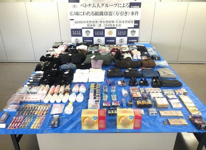 Trong số 4 người có Nguyen Hoang Anh, 38 tuổi. Nhóm được cho là trộm 5.237 mặt hàng gồm áo dài tay, áo khoác, trong nhiều lần nhập cảnh Nhật Bản từ tháng 12/2018 đến tháng 10/2023. Các tang vật thu giữ cho thấy ngoài quần áo có có nhiều mặt hàng mỹ phẩm.