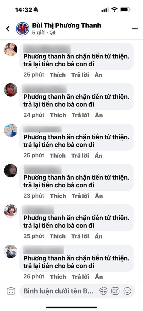 Old  Arrow Phương Thanh liên tục bị "khủng bố" bằng loạt bình luận tố ăn chặn tiền từ thiện