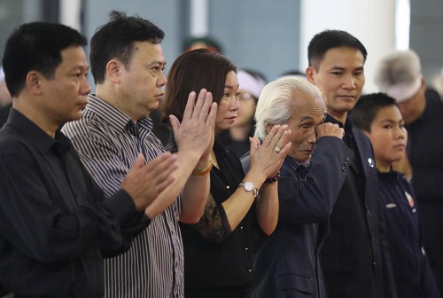 Ông Nguyễn Xuân Hùng (tóc bạc trắng tay dụi mắt) cùng con, cháu tới viếng nguyên Tổng bí thư Đỗ Mười. Ảnh: Ngọc Thành.