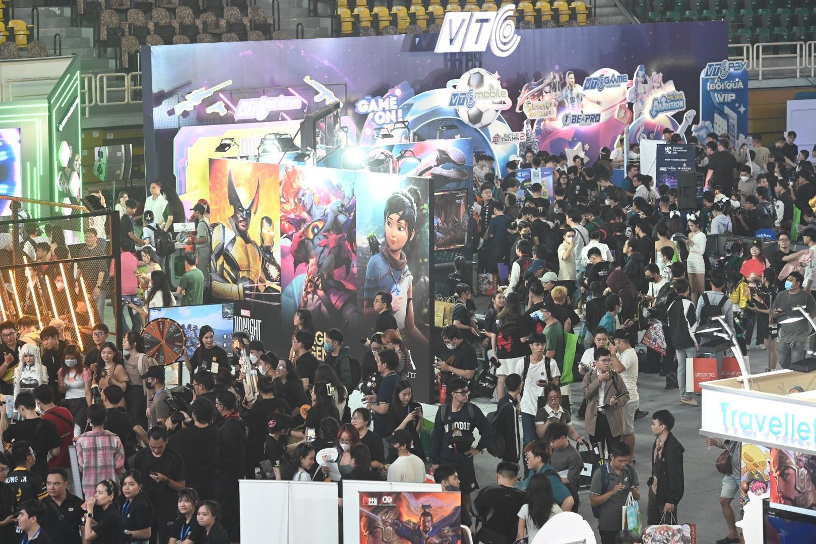 Tại sự kiện, các gian hàng game đông nghẹt người tới trải nghiệm và lấy quà, tạo không khí vô cùng sôi động.
