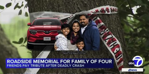 Một gia đình Mỹ gồm 4 người, có 2 trẻ em dưới 15 tuổi thiệt mạng trong chiếc xe Vinfast - VF8. PLEASANTON, California (KGO) – Cảnh sát Pleasanton cho biết một vụ tai nạn xảy ra vào tối thứ Tư đã giết chết một gia đình bốn người gốc Ấn.
