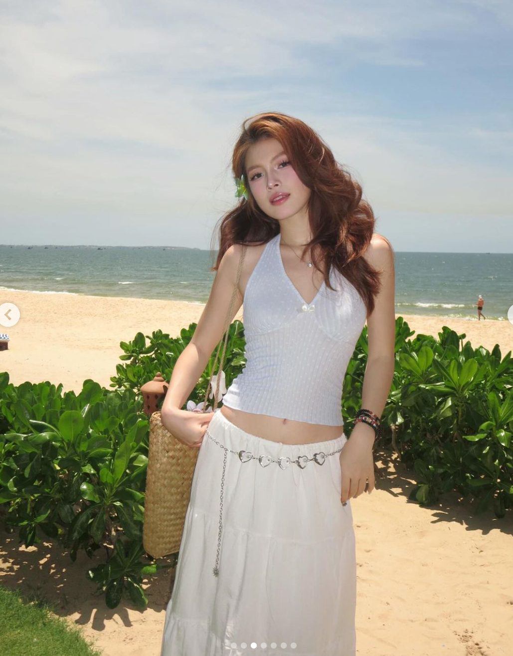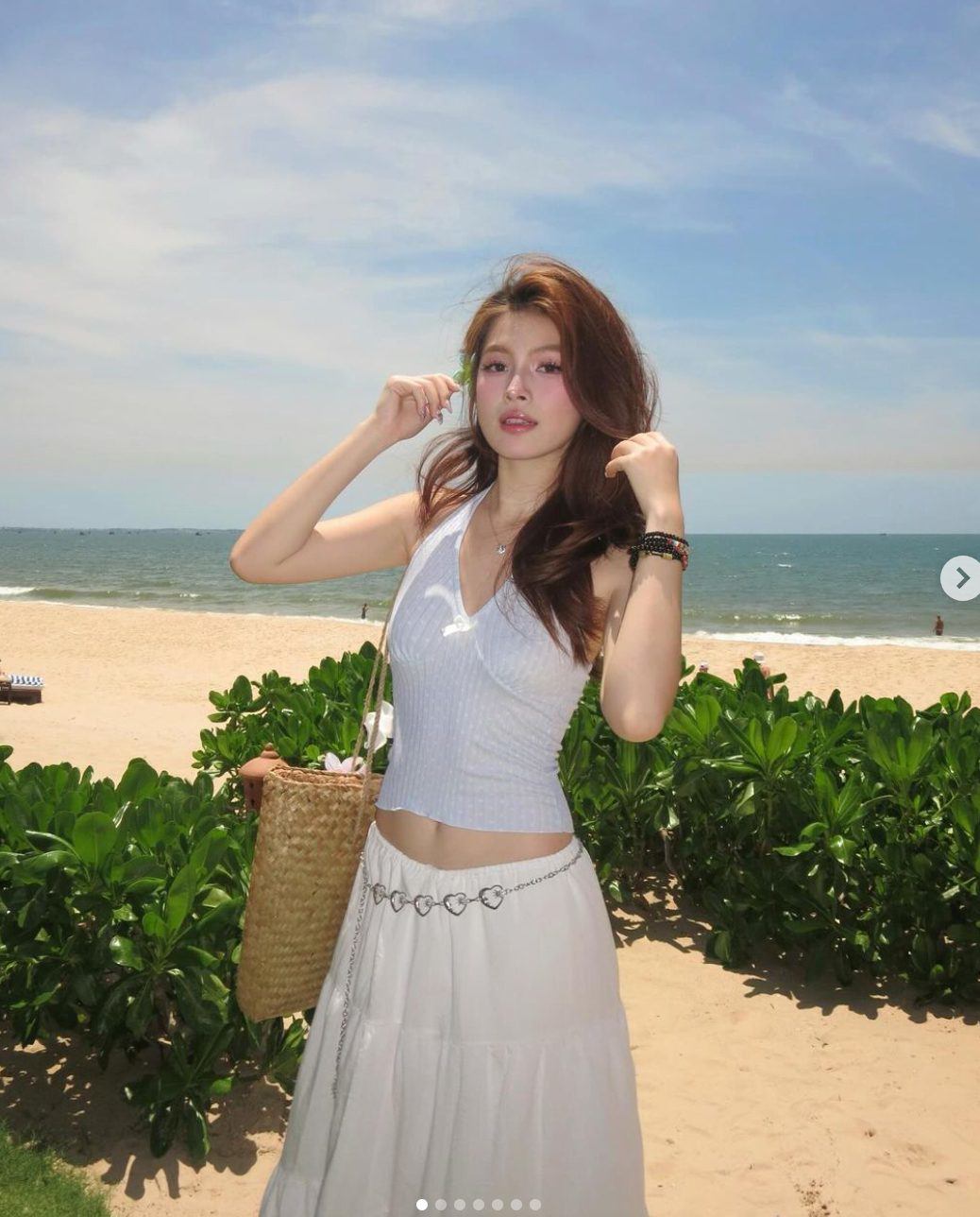 Vừa qua, cô nàng đã có chuyến du lịch tại bãi biển, không phải bikini, người đẹp khiến công chúng bất ngờ khi lăng-xê kiểu quần ôm ngắn mix cùng áo croptop quyến rũ, trẻ trung.
