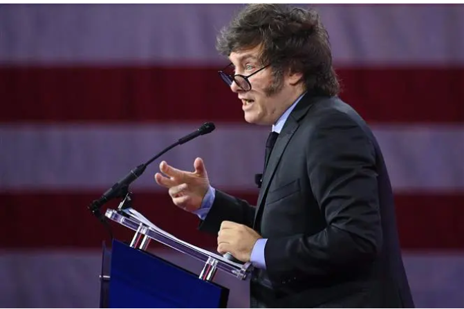 Tổng thống Argentina Javier Milei, người ủng hộ quan hệ hợp tác với Mỹ, phát biểu tại một hội nghị ở bang Maryland, Mỹ ngày 24/2/2024. Ảnh: AFP/TTXVN