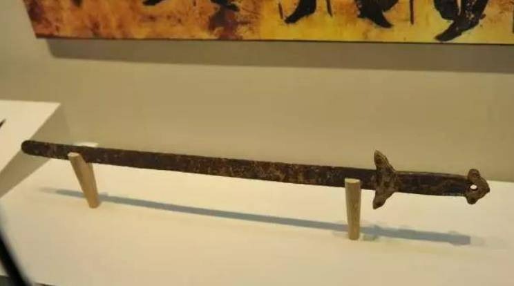 Một món bảo vật cực kỳ quý hiếm khác cũng được phát hiện trong cuộc khai quật cổ mộ này - một thanh kiếm có cán vàng và bao kiếm hình chiếc nhẫn được làm bằng vàng, có hoa văn vô cùng đẹp mắt.