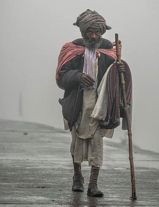 Người ăn xin không có được bộ quần áo thích hợp với thời tiết rất lạnh. Cô cúi xuống hỏi người ăn xin:
