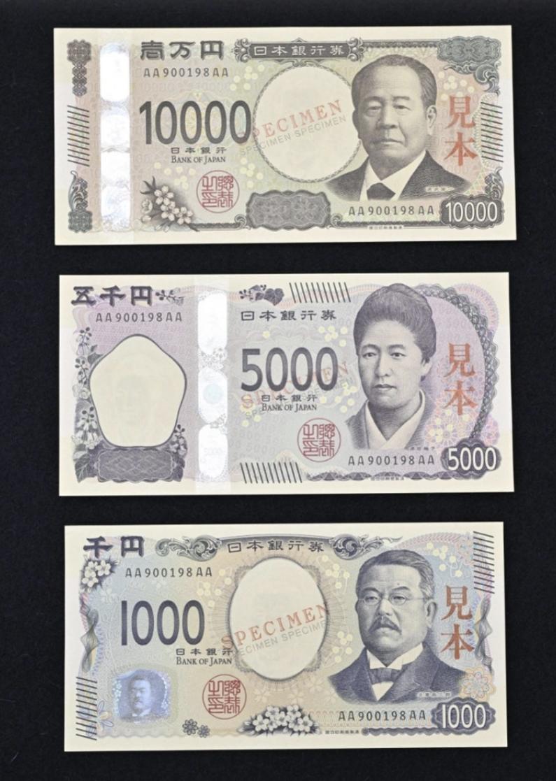 Mặt sau của 3 tờ tiền sẽ lần lượt in hình ga Tokyo, hoa tử đằng Nhật Bản và tác phẩm mô tả núi Phú Sĩ của nghệ sĩ Ukiyoe Katsushika Hokusai. Tiền mới cũng bao gồm các hình 3D hologram để ngăn chặn giả mạo - biện pháp lần đầu tiên được sử dụng trên tiền tệ của bất kỳ quốc gia nào trên thế giới, đồng thời giới thiệu một “thiết kế phổ quát” giúp mọi người sử dụng dễ dàng hơn.