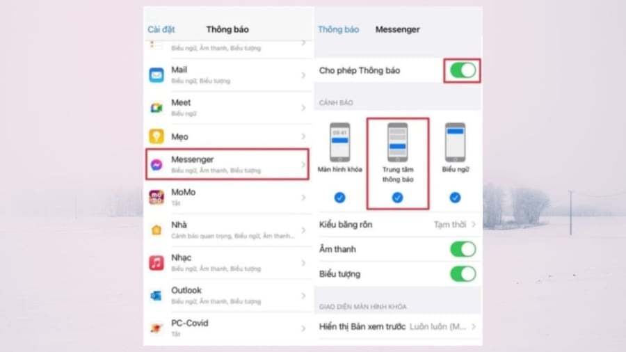 Còn đối với các điện thoại hệ điều hành iOS, để bật tính năng này, bạn hãy vào Cài đặt > Thông báo > bật Cho phép thông báo > Trung tâm thông báo .