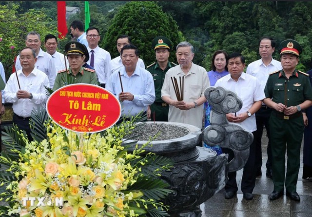 Tô Lâm tiếp tục chuyến thăm và làm việc tại tỉnh Cao Bằng, Chủ tịch nước Tô Lâm và đoàn công tác Trung ương đã đến dâng hương tại Đền thờ Chủ tịch Hồ Chí Minh ở Khu di tích quốc gia đặc biệt Pác Bó, xã Trường Hà, huyện Hà Quảng, tỉnh Cao Bằng.