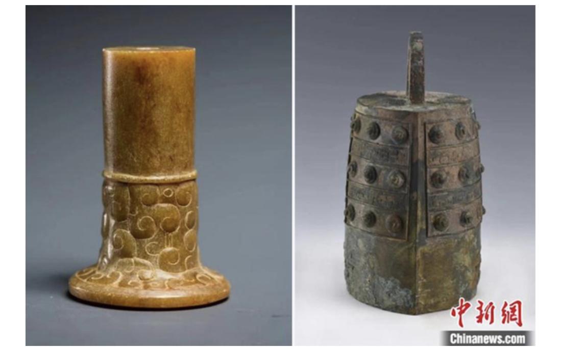 Cụ thể, họ đã khai quật được 16 chiếc chuông đồng bên trên có khắc chữ, nhiều vũ khí và đồ tạo tác bằng ngọc bích. Ngoài ra, ngôi mộ còn có một đế trống bằng đồng. Phần đế có dạng rỗng để lắp trống vào. Nó có chiều ngang khoảng 83cm, với kích thước này, thứ đó được xác định là một trong những đế trống lớn nhất từng được tìm thấy ở Trung Quốc.