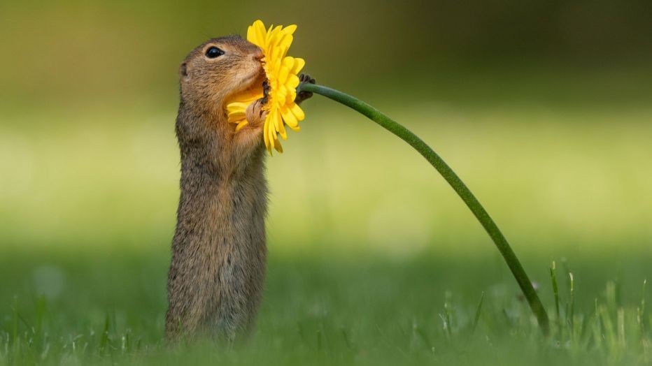 Khoảnh khắc con sóc tóm bông hoa lại gần rồi ngửi. Nguồnick van Duijn.