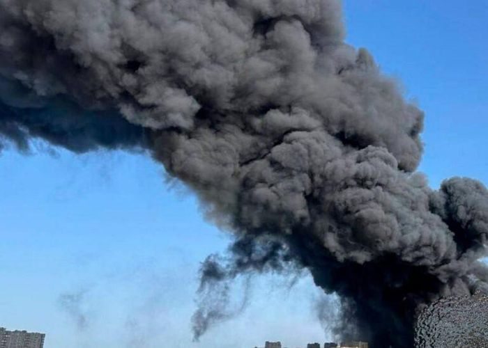 Khói bốc lên cao sau vụ tấn công tên lửa của Nga nhằm vào Nhà máy cần cẩu hạng nặng Krayan của quân đội Ukraine ở Odessa, ngày 24/6/2024