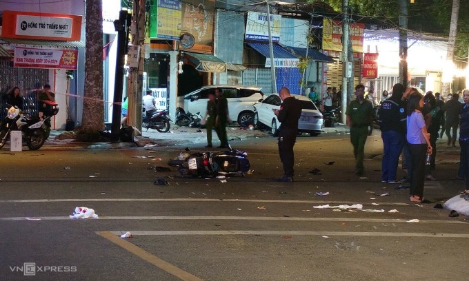 Chuỗi tai nạn liên hoàn khiến mẹ con bà Sự tử vong tại chỗ, 5 nạn nhân còn lại được đưa đi cấp cứu trong tình trạng đa chấn thương; 4 xe máy và hai ôtô hư hỏng.