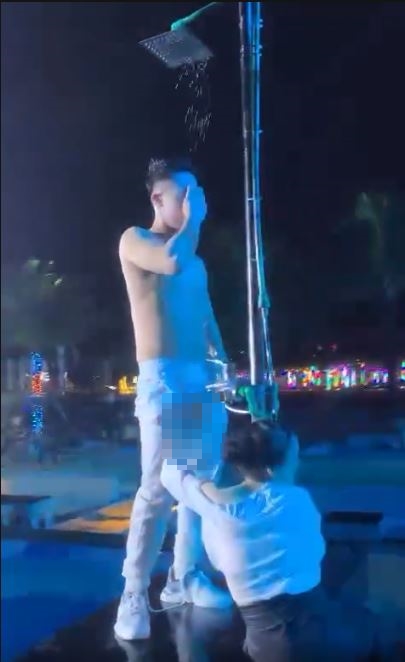 Trong đoạn clip, một nam thanh niên cởi trần nhảy múa dưới vòi tắm, một số phụ nữ xung quanh động chạm vào những vị trí nhạy cảm trên cơ thể nam thanh niên. Không những vậy, những phụ nữ này còn quay mặt về phía điện thoại để chụp ảnh về hành động phản cảm này.