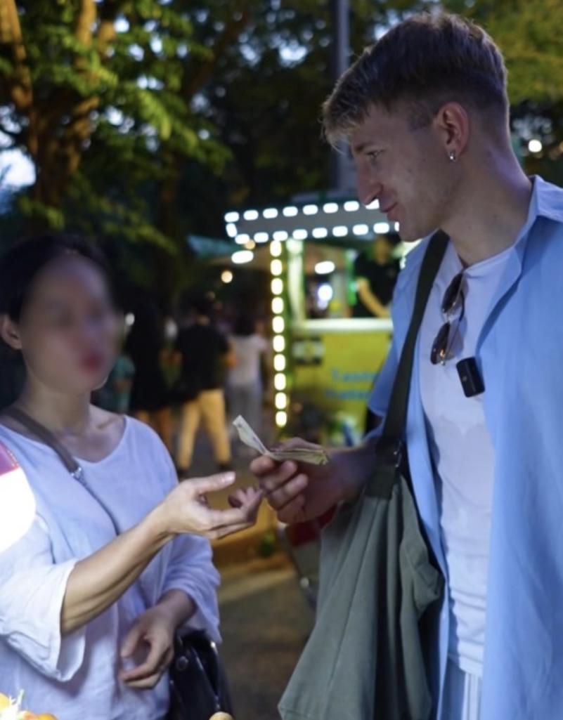 Người bán hàng miễn cưỡng cầm 30 nghìn cho 2 quả roi. Ảnh cắt từ clip