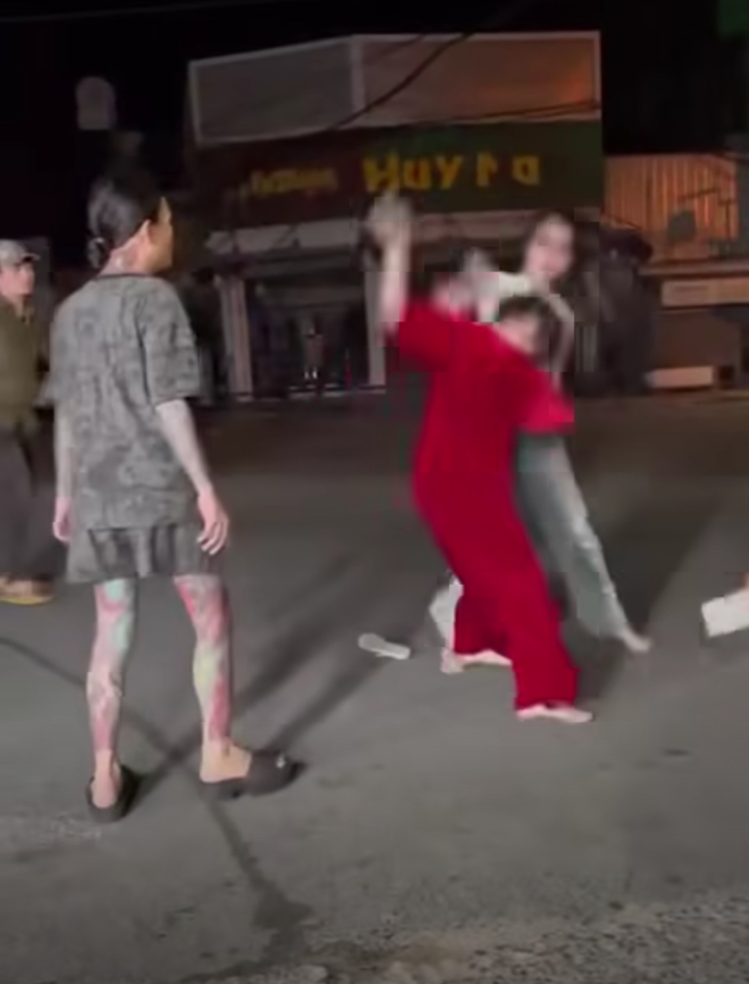 Hình ảnh từ đoạn clip cho thấy, hai cô gái xông vào nắm tóc, đánh đá nhau trước sự chứng kiến và cổ vũ của nhiều người. Sau đó, trên cơ thể người phụ nữ mặc áo thun trắng có một số vết thương nghi do bị đối thủ dùng lưỡi lam rạch.