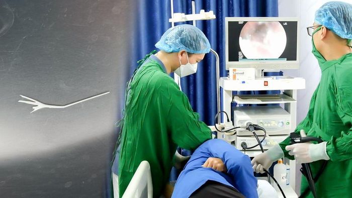 Sau khi thăm khám, nắm bắt được t́nh trạng của người bệnh, các bác sĩ đă thực hiện nội soi để gắp dị vật. Xương cá nằm mắc tại vị trí hạ họng, hai đầu dị vật đều cắm vào niêm mạc, gây chảy máu nên không thể lấy được dị vật. Các bác sĩ phải chỉ định nội soi tiêu hóa ống mềm để lấy dị vật bằng ḱm sinh thiết.