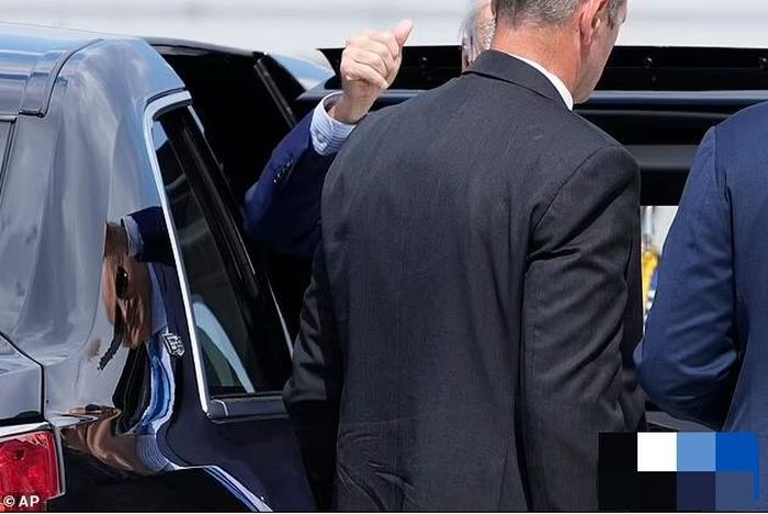 Tổng thống Biden giơ ngón tay cái lên lúc xuống xe limousine để lên chiếc Không lực Một tại Sân bay Quốc tế Harry Reid ở Las Vegas. Ảnh: AP.