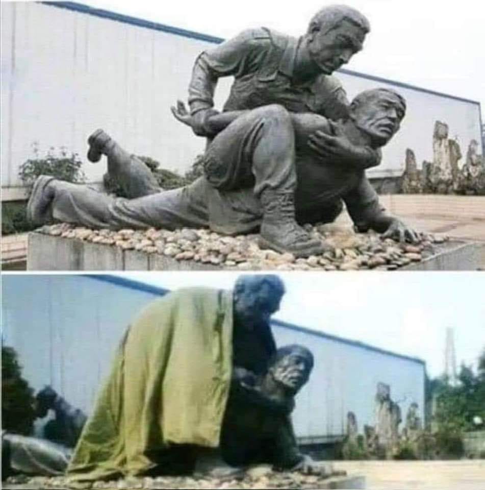 Một bức tượng nằm trước học viện cảnh sát ở nước ngoài...., mô tả cảnh một anh cảnh sát mặc thường phục (cảnh sát chìm) đang gô cổ tên tội phạm.