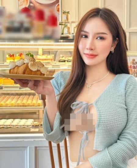 Mới đây, trên trang cá nhân, hot girl Yumiko đăng tải hình ảnh trong một quán bánh ngọt. Cô nàng diện váy ngắn kết hợp với áo crop top. Hot girl người Thái Lan gây tranh cãi vì "quên nội y" khoe vòng một căng đầy.