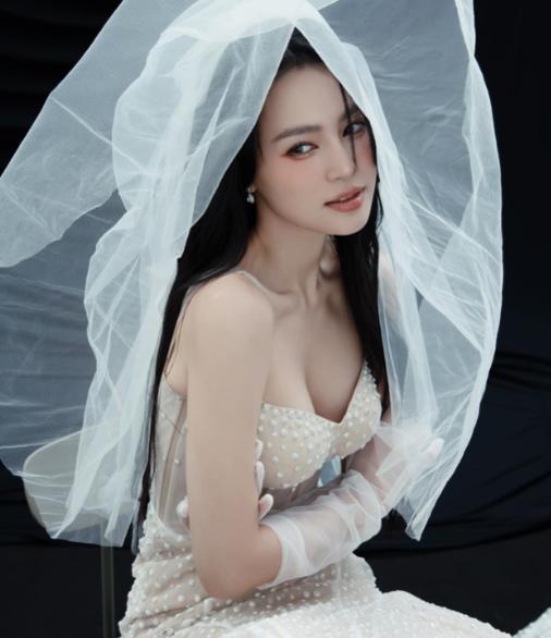Trong loạt ảnh mới, nữ diễn viên diện chiếc váy trắng lộng lẫy, trên đầu đội khăn voan khoe visual xinh hết nấc.